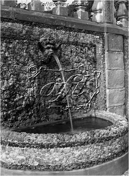 [Lucca : San Pancrazio : Villa Cittadella, oggi Grabau : fontana del muro tergale con mascherone : ca. 1967 (UDN 208)]