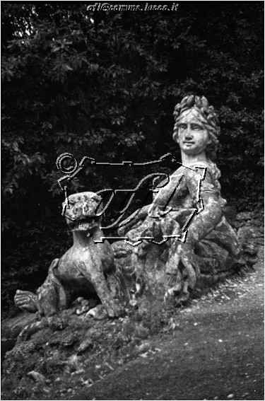 [Pescia : Collodi : Villa Garzoni poi Gardi : il giardino : statua di donna semisdraiata affiancata da una pantera, raffigurante la "Pescia lucchese" (MPR 408)