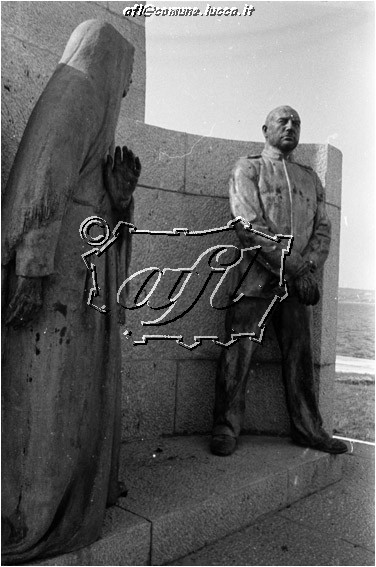 [Capodistria : monumento a Nazario Sauro : particolare della parte posteriore con le due statue bronzee raffiguranti il patriota e sua madre, dello scultore Attilio Selva (MPR 626)