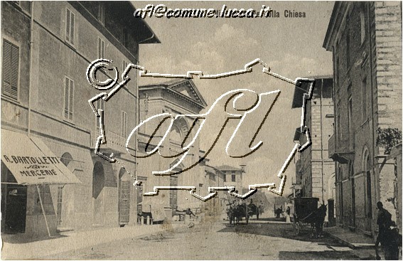 Querceta : Via Nazionale colla Chiesa ; [Seravezza : Querceta : tratto di via Nazionale presso la chiesa di Santa Maria Lauretana (JMF 3368)