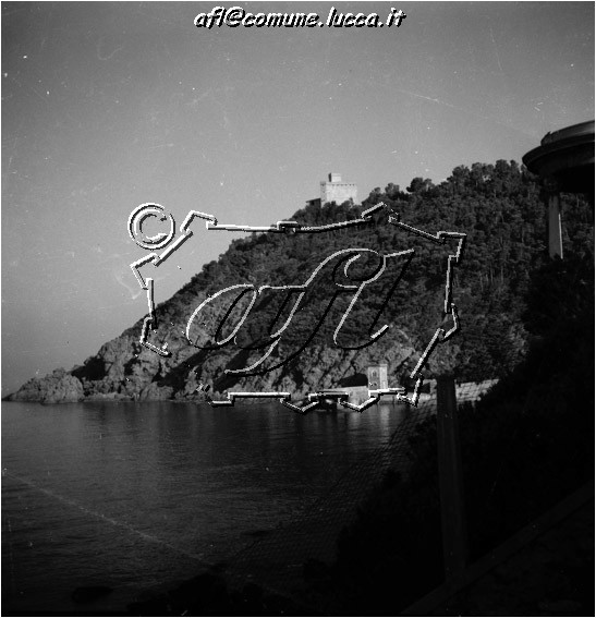[Livorno : Quercianella : il promontorio su cui si erge il Castello Sonnino e il porticciolo sulla baia della spiaggetta del Rogiolo (EFR 3140)]