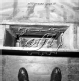 [Lucca : chiesa di San Romano : interno : restauro del coro ligneo : fase di stuccatura e reintegro : particolare dell'inginocchiatoio smontato dell'asse (LGR 11)]