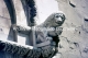 [Lucca : chiesa di Sant'Andrea : particolare del portale, con statua aggettante di leone posta a lato dell'architrave : agosto 1973 (UTS 1894)]