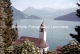 [Svizzera : lago dei Quattro Cantoni : veduta paesaggistica da Wegis, con la chiesa di Santa Maria Regina Coeli : agosto 1961 (DTS 2369)]