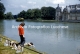 [Francia : Chantilly : il castello : due visitatrici sulla sponda del fossato : ca. 1961 (DTS 1013)]