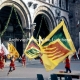 [Lucca : Palio della Terzanaia : l'esibizione degli sbandieratori davanti al duomo di San Martino (ESS 3493)]