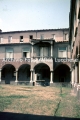 [Lucca : convento dei Serviti : il chiostro : particolare del lato ovest con loggetta aggettante e pozzo : 1986 (UTS 2082)]